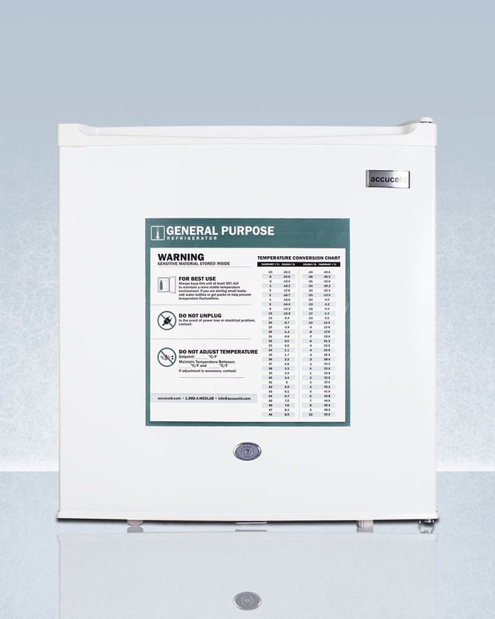 NOTE: Accucold's general purpose series refrigerators are intended for a wide variety of basic storage of non-critical products. For storage of high-value vaccines, life science materials, and medical or clinical biologicals, browse Accucold's Medical & Laboratory or Pharmacy & Vaccine Storage categories.